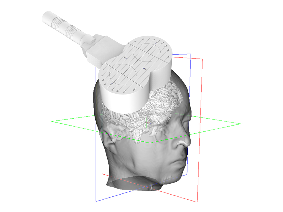 英智TMS偽刺激系統將真偽刺激線圈組集成在同一線圈內,設備通過讀取IFM刺激卡的屬性智能切換真偽輸出。偽刺激線圈采用特殊纏繞工藝,外加物理屏蔽層,可實現同等輸出強度下,到達刺激靶點磁感應強度接近于0。可實現真正的隨機、雙盲、多中心研究,滿足臨床研究中對結果準確性、可靠性和一致性的要求,并可搭配3D導航系統聯合使用,以進一步提高研究的可重復性。