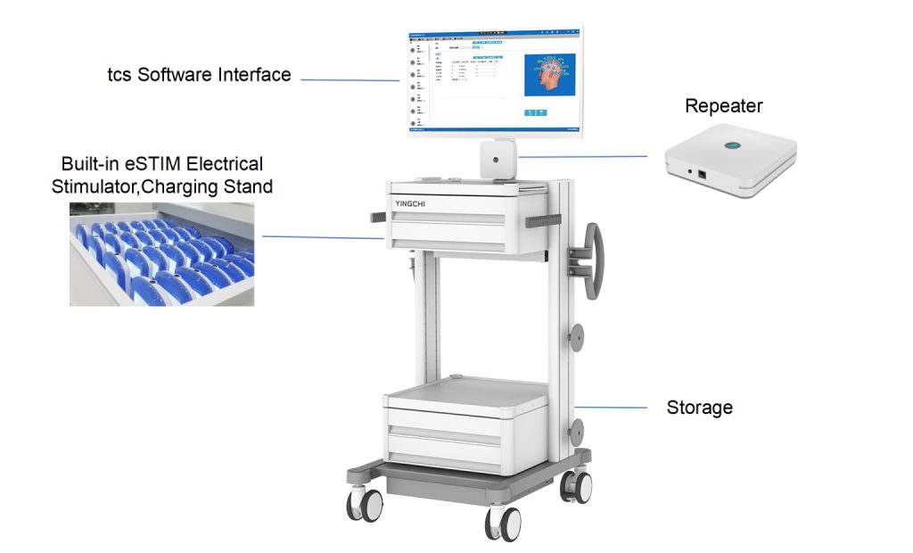 YINGCHI tCS-E2000 can be used for both scientific research and clinical treatment. It is safe, efficient, non-invasive, easy-to-use and of low cost, which can even store treatment records. This electrical stimulator is equipped with wireless Bluetooth technology, allowing users to operate 32 electrical stimulators at the same time, and each electrical stimulator can perform any treatment protocol.